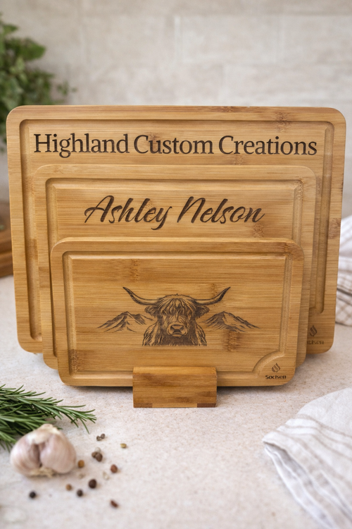 Welcome to Highland Custom Creations! We're thrilled to have you here. Browse our collection of custom engraved gifts and personalized goods crafted with care and attention to detail. If you'd like to commission a custom piece, we'd love to hear from you—simply fill out our Custom Order Inquiry Form in the Contact section. We look forward to bringing your vision to life!